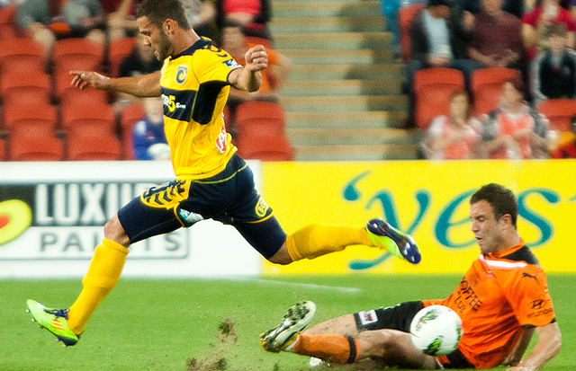 In Sydney, the pre-season training involved a lot of off-the-ball training. In terms of that type of fitness, with the ball, always playing little games which are so intense, I feel it-s a lot higher here than it was at Sydney. I think the transition has been good, it took me a few weeks to get used to everyone and how they play and what the coaches wanted from me defensively, when we get the ball where they want me to be and stuff like that. But I think I understand what they want from me now and I-m alright with it now. I remember one of our pre-season games, I struggled a bit in the first half and it wasn-t a good half of football to remember. It was one of the worst I-ve ever played. We weren-t playing on a good pitch but we were still expected to play out from the back. I was trying to do that but it wasn-t working for me and I went in at half-time and thought I was going to get yelled at or something. Ange was fine, he was really calm and said ‘keep doing what you-re doing, keep trying to play out, I-ve got full confidence in you-. He said he knew it wasn-t going to happen all at once for me and that they didn-t expect me to master everything straight away but he wanted me to keep trying. Second half, I came out and it was a completely different game for me and I ended up scoring my first goal for the Roar which was good! Having that confidence in me, I think I-ve improved as a player already – playing out from the back and that philosophy of always supporting everyone. It-s made me a better player and I really being involved a lot more with passes and more touches.