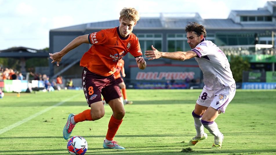 The men in orange pressed relentlessly for a second and came closest minutes before halftime. O’Shea arced a free kick in from the left corner of the pitch, and Nicholas D’Agostino rose highest among a cluster of Perth defenders to nod it goalward, but it cannoned back off the crossbar and was cleared.